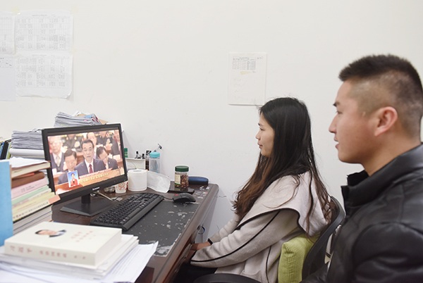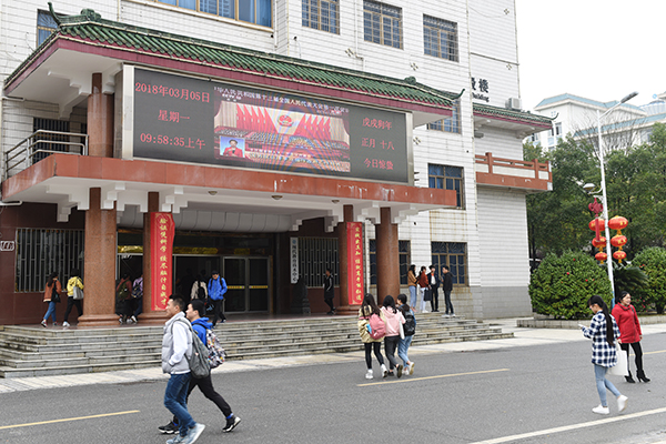 德赢官网广大师生热切关注“两会”召开,学校师生通过手机、电视、网络、电子显示屏等渠道收听收看“两会”盛况,多渠道、多方式热切关注“两会”动态。今天上午9点, 学校师生分别以不同方式认真听取李克强总理所作的政府工作报告。学校电子电视屏、校园广播站分别对会议盛况进行了转播,让更多师生及时了解大会盛况。