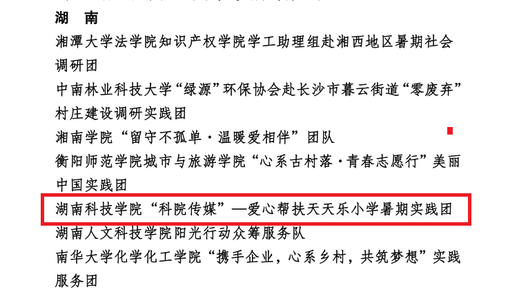 另悉,德赢官网“科院传媒”——爱心帮扶天天乐小学暑假实践团队被评为2017年全国大中专学生志愿者暑期“三下乡”社会实践活动“优秀实践团队”。