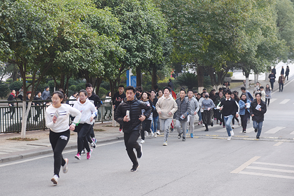 据了解,“前进2018”新年环校跑活动由校团委、保卫处、后勤服务总公司主办,校学生会、教工团总支承办。活动旨在着眼新时代全民健身发展内涵的深刻变化,让运动成为习惯、成为时尚,进一步掀起阳光体育运动和“三走”活动的新高潮,以更好的精神面貌迎接新一年的到来。