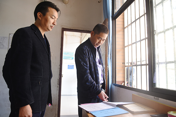 考评组一行仔细查阅了德赢官网“平安高校”建设和2017年度综治工作相关材料,在副校长吴小林以及保卫处相关人员的陪同下,实地察看了教学楼、监控室、重点实验室、学生公寓、学生食堂等重点部位的人防、物防和技防建设情况,并随机在学生中开展了测评。