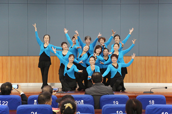 从静态的服饰仪表,到动态的一颦一笑,一场不输青春时尚秀场的中老年时装走秀向观众展示了娴熟的表演技巧和成熟优雅的风采;伸臂、扭腰、转手腕,舞姿精彩纷呈,节奏欢快的广场舞引起全场欢呼喝彩;小组合唱带来的“茉莉花”、“回娘家”、“没有共产党就没有新中国”给大家呈献了一场精彩的视觉盛宴,展现了新时期老同志们健康向上的精神风貌。
