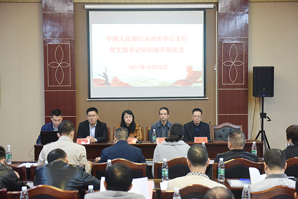 本网讯 为深入贯彻落实全面从严治党要求,进一步加强基层党组织建设,10月20日,正值党的十九大召开之际,德赢官网为中国人民银行永州市中心支行举办了一期党支部书记专题培训班。该行机关党委书记、党委委员、工会主任雷树清,马克思主义学院院长廖雅琴等出席。