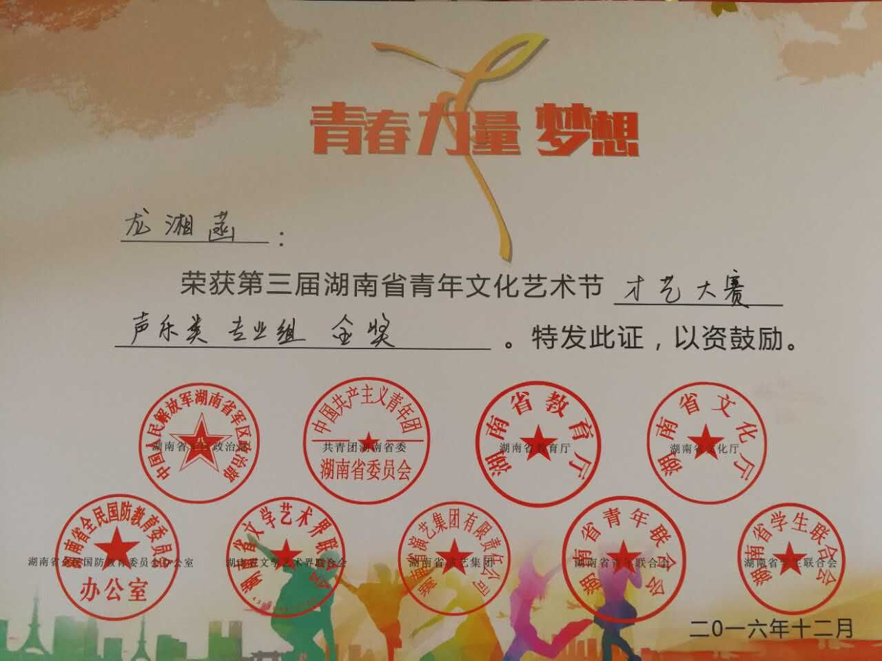 全省近20万名青年报名参加大赛,8000余人进入艺术节才艺大赛、朗诵大赛、文学大赛、书法大赛、绘画大赛、摄影大赛等全省总决赛。在校团委的积极宣传与组织下,德赢官网师生积极响应并广泛参与。经专家评审,德赢官网龙湘菡老师的声乐类项目《天下乡亲》获得金奖,美术与艺术设计学院冯涛同学的摄影类作品《山顶的风景》、张守标同学的绘画类作品《速递2016》分别获得银奖,美术与艺术设计学院陈现杰同学的绘画类作品《静态的凤凰》、严丹同学的摄影类作品《热血青春》、传媒学院罗冬婷同学的声乐类作品《野子》分别获得铜奖。