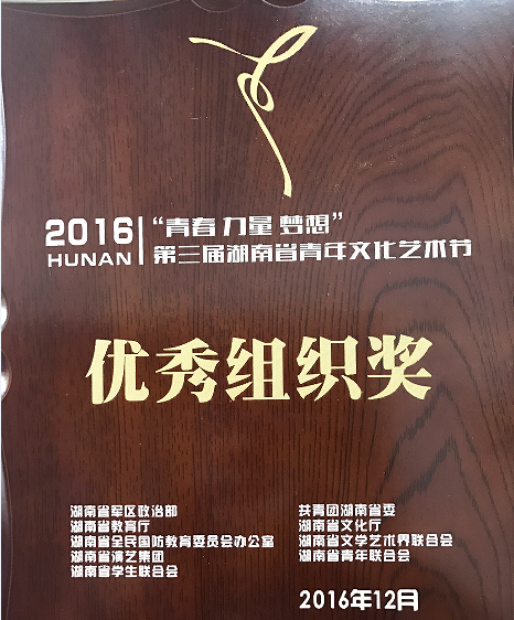 本网讯 日前,第三届湖南省青年文化艺术节成绩揭晓,德赢官网团委报送的项目表现优异,获得金奖1个、银奖2个、铜奖3个,德赢官网荣获优秀组织奖。