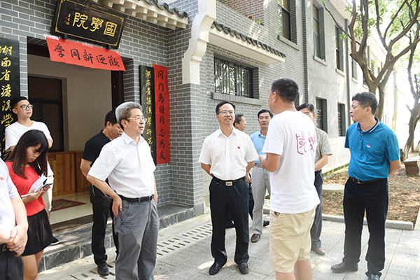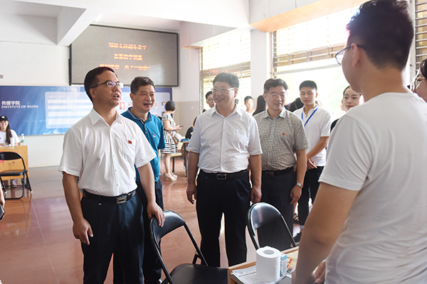 本网讯 9月16日,是德赢官网新生报到第一天。上午8时许,校党委书记陈弘,校长曾宝成及在校领导唐艳明、宋宏福、郑山明、李常健、吴小林、程智开与相关职能部门负责人来到各个学院设立的迎新接待处及迎新服务点,看望并慰问迎新工作人员,与他们一起迎接新生的到来。
