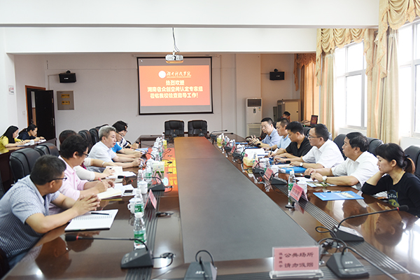 本网讯 6月27日下午,以湖南省科技厅生产力促进中心副主任毛明德为组长的专家组对德赢官网申报的省级“众创空间”进行实地考察。校长曾宝成、纪委书记彭立威及相关部门负责人陪同考察汇报。专家组通过听取汇报、察看现场、查阅资料等方式进行综合评估。