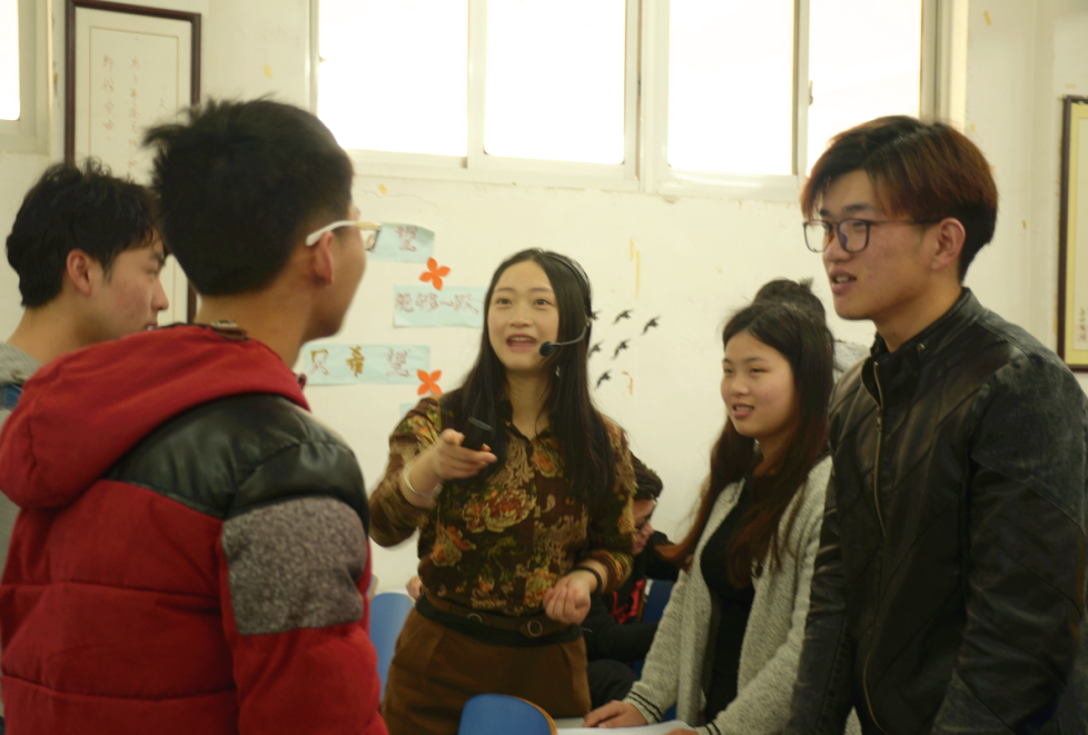 胡老师纠正学生的口语发音。