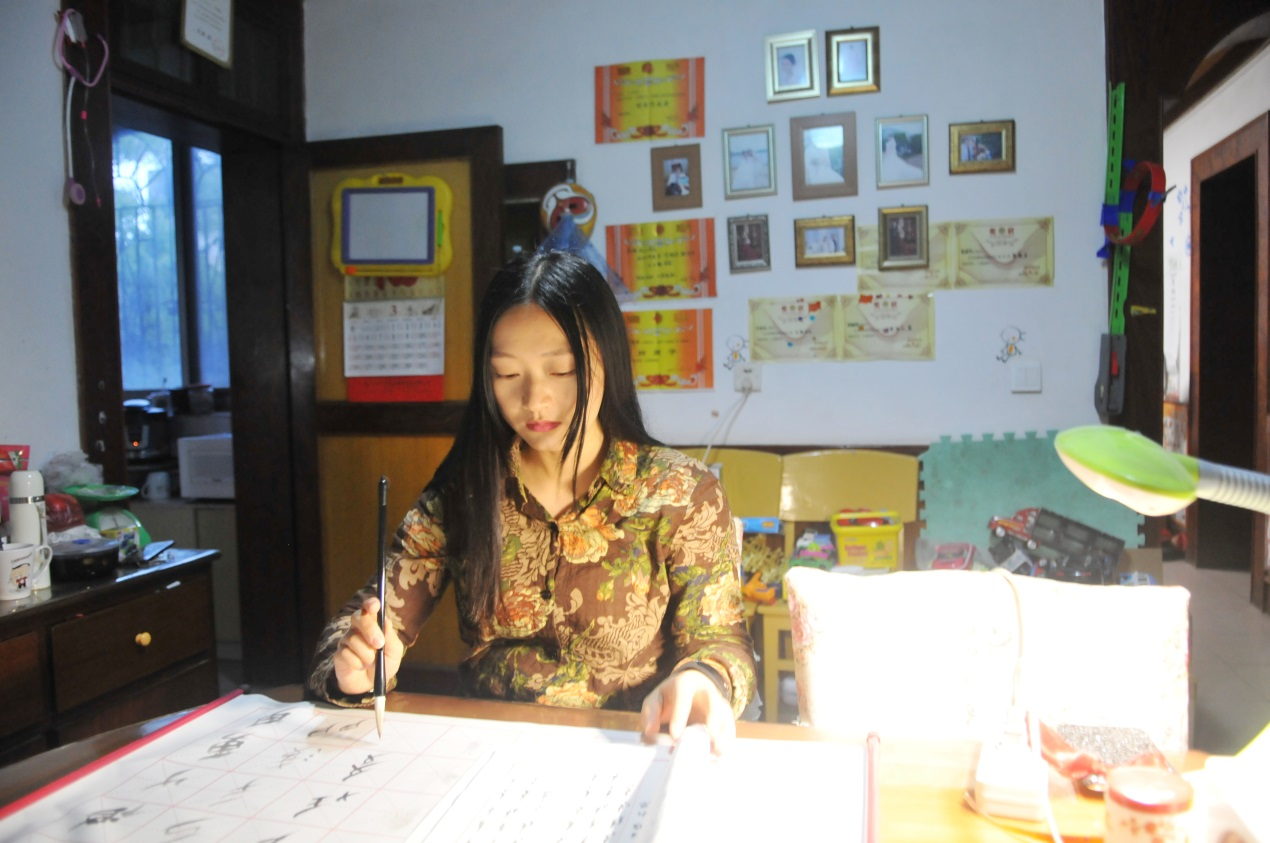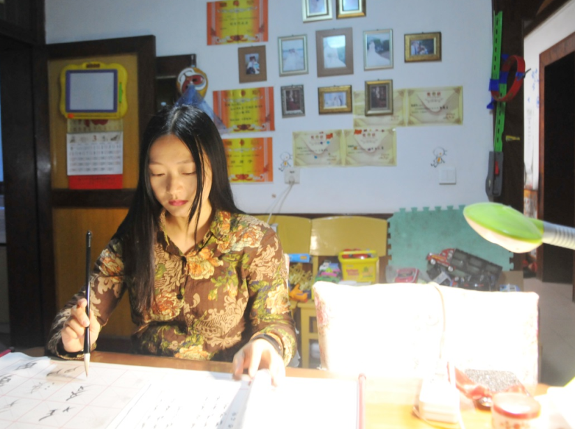 每天胡老师都会找一点时间练习自己喜欢的女书。