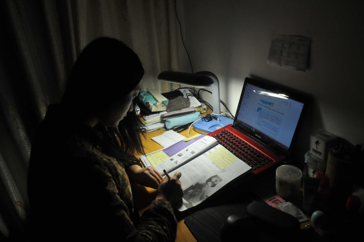 在家人都休息之后,胡老师在书房开始了自己的备课时光。桌上的灯光映衬夜空的星辰,安静的深夜里胡老师将心血连同这点点星光一起融进了字里行间里。
