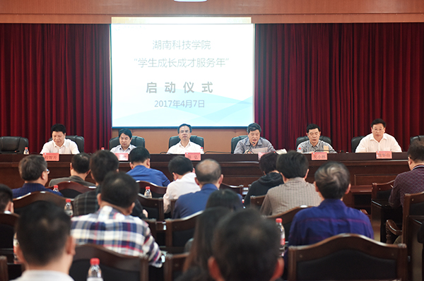 本网讯 4月7日下午,学校“学生成长成才服务年”启动仪式在行政办公楼八楼一会议室举行。校党委书记陈弘,校党委副书记唐艳明,副校长李常健、吴小林、程智开出席启动仪式,仪式由学工部部长唐华山主持。