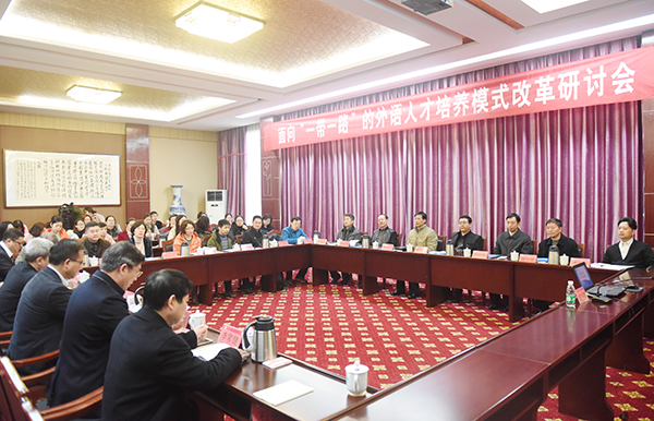 本网讯 3月25日上午,面向“一带一路”的外语人才培养模式改革研讨会在德赢官网举行。校党委书记陈弘、校长曾宝成,副校长宋宏福、郑山明、李常健出席,解放军外国语学院教授、博士一行12人,学校科技处、人事处领导,外国语学院部分老师参加了会议。