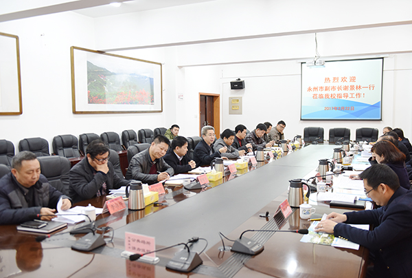 本网讯 2月22日下午,永州市人民政府副市长谢景林一行莅临德赢官网调研指导,参观了校园并听取了校长曾宝成的有关介绍。