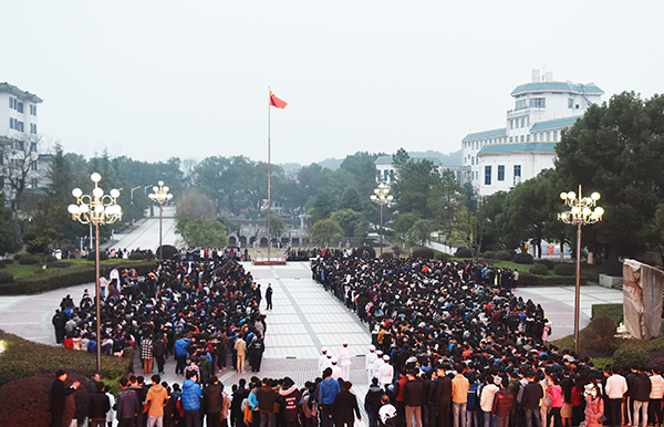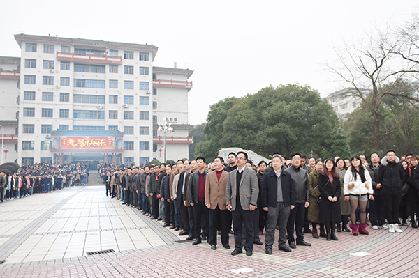 本网讯 隆冬时节寒意正浓,但阻挡不了德赢官网师生对新年的美好期盼。1月3日清晨,学校隆重举行新年升国旗仪式,校党委书记陈弘、校长曾宝成及全体校领导出席升旗仪式,全校中层干部、机关工作人员、学生辅导员及教师代表、2016级全体学生4000余人共同度过了这一庄严时刻。