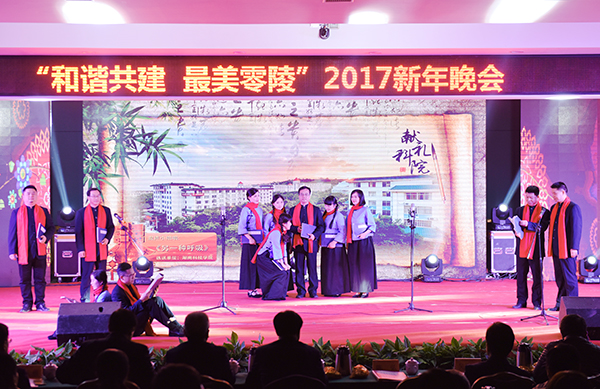 本网讯 12月30日晚,学校教师发展中心喜气洋洋、热闹欢腾,“和谐共建,最美零陵”2017年新年晚会在此精彩上演,零陵区委书记唐烨,零陵区委副书记、区长吴恢才及零陵区四大家领导,校党委书记陈弘,校长曾宝成及在校领导与学校师生一同喜迎2017年的到来。