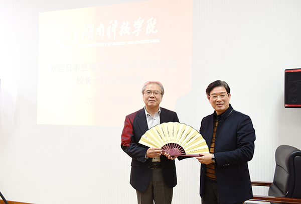 宋宏福对野左近勇藏先生的再次来访表示欢迎,他指出,两校进一步合作应立足于日语专业语言学习基础上,发展服务于以深造为目的赴日本求学的非日语专业学生语言培训和硕士预科平台建设的打造,同时,积极拓展两校专业教师在教育教学方面的交流与合作。