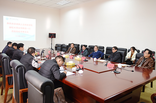 本网讯 12月9日上午,湖南人文科技学院副校长周发明一行来校考察交流。校长曾宝成,副校长李常健热情迎接,双方就应用型人才培养、科学研究与地方服务等方面等展开交流。
