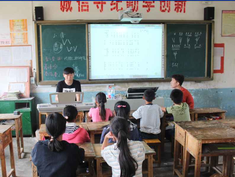 文艺扶贫是音乐与舞蹈学院发挥教育资源优势,助力精准扶贫的重要方式,也是重塑乡村文化,阻断贫困代际传递的重要手段。音乐与舞蹈学院自去年暑期开展文艺下乡以来,始终心系扶贫点,今年10月,学院安排刘睿等6名优秀大四实习生赴冷水井乡学校实习,并负责兴趣班培训任务,选派声乐教师廖宁杰、管乐教师李炳帅为村管乐队客座教师,已经先后来村组织6次培训课程。参加兴趣班培训的孩子们,通过2个月的培训,也逐渐从最初的害羞内敛到现在敢于展现自己,从零基础到能够上台表演,接受了艺术的启蒙,掌握了文艺基础。