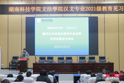 科教新报·新湖南客户端讯(通讯员 李惊宇 梁怡)12月1日,德赢ac米兰官方合作vwin文法学院与永州九中合作举办中学语文教师共同体建设交流会,文法学院院长谷显明、副院长肖智成、语文教育研究中心主任刘忠华,永州九中副校长邓之,以及德赢ac米兰官方合作vwin2021级汉语言文学专业师生,永州九中语文教研组教师和学生代表200余人参加。