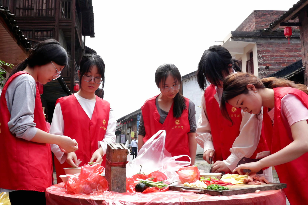 活动现场,学生志愿者化身秦奶奶的“贴心儿女”,纷纷积极行动起来。洗菜、配菜、起锅烧油......志愿者们有条不紊、分工明确,小小的屋子里很快就“香气四溢”。瘦肉鸡脚汤、上汤娃娃菜、肉沫莲藕、芹菜炒鸡蛋......一道道热腾腾的菜肴相继出锅。具有衡阳风味的秘制凉拌皮蛋是志愿者于蓉蓉的拿手好菜,“我们给奶奶带来的既是一餐饭,也是关怀和陪伴。”饭桌上她动情地说。