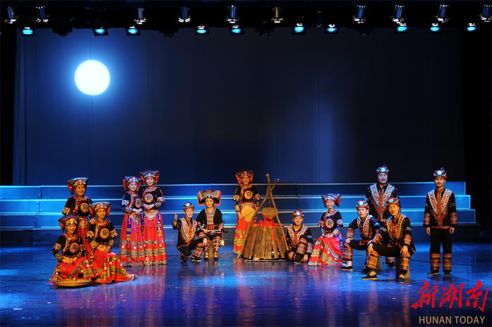 以现代编舞技法演绎瑶族史诗,原创舞蹈《跳盘王》《打起铜锣追男崽》《过山》登上央视《舞蹈世界》;师生们化身文化拾穗者,手持专业录音设备,精心采集濒临失传的“瑶族哭嫁歌”;在零陵花鼓戏剧团,青年学子认真学习舞手帕、挥纸扇、走碎步等绝招,沉浸式体验零陵花鼓戏的内涵;原创小合唱瑶族歌曲《盘王大歌》获全国第四届大学生艺术展演一等奖,零陵渔鼓《欸乃一声山水绿》获湖南省第七届大学生艺术展演一等奖……学院构建的“田野采风-课堂重构-舞台活化-数字传播”非遗传承链,让沉睡的文化遗产焕发新生。