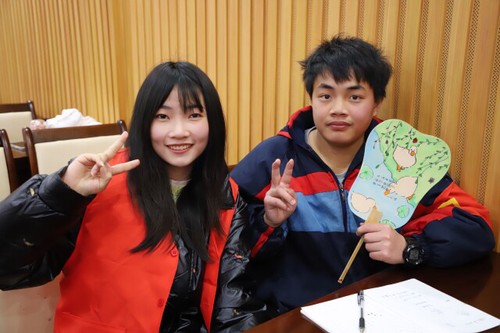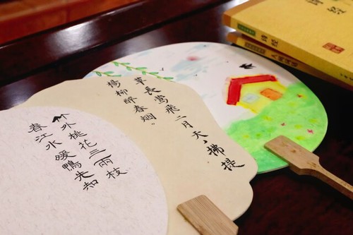 草长莺飞、早春景色的《村居》,百花盛开、暮春景色的《晚春二首》……活动中,大学生志愿者给每个孩子准备了一个团扇,上面是志愿者精心书写的春日诗词。“古诗词里面有哪些春景呢?”“用什么颜色来描绘?”……在与孩子们的进一步沟通交流中,志愿者不断给他们引导和鼓励,孩子们在小小的团扇上放飞想象的翅膀,敞开心灵的窗口,一笔一画勾勒出别具一格的“艺术作品”,在古诗词中寻觅浓浓的春意。