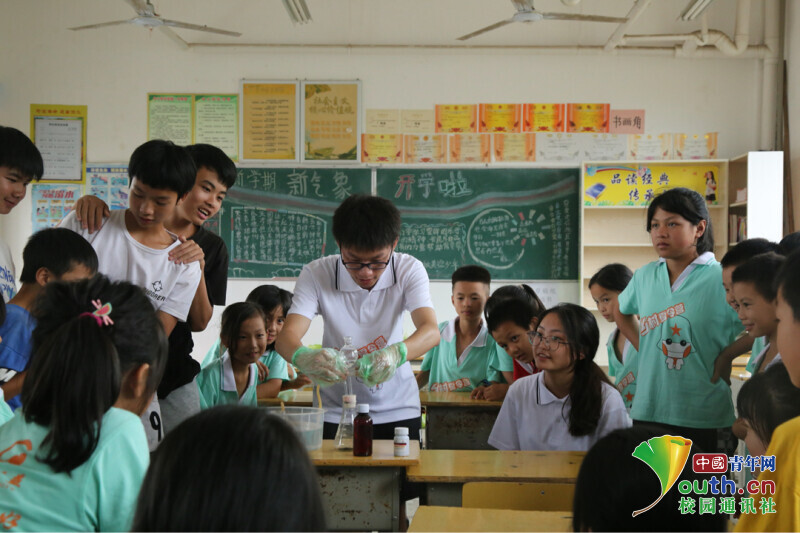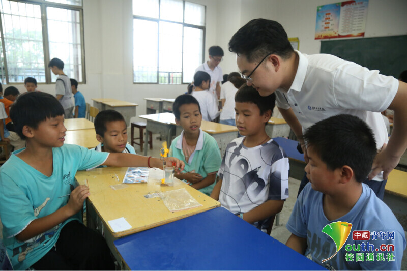中国青年网永州7月5日电(通讯员 周亮君 刘德江 杜俊杰)7月2日,德赢ac米兰官方合作vwin理学院“理学先锋”乡村振兴促进团赴江华瑶族自治县竹园寨九年制学校开展暑期“三下乡”社会实践活动。团队通过举办科学夏令营的形式,带领该校100名学生开启科学探索之旅,引导他们在一个个有趣的实验中感受科学力量,树立远大理想,坚定大国自信。
