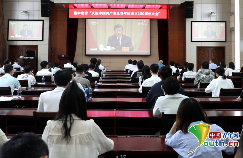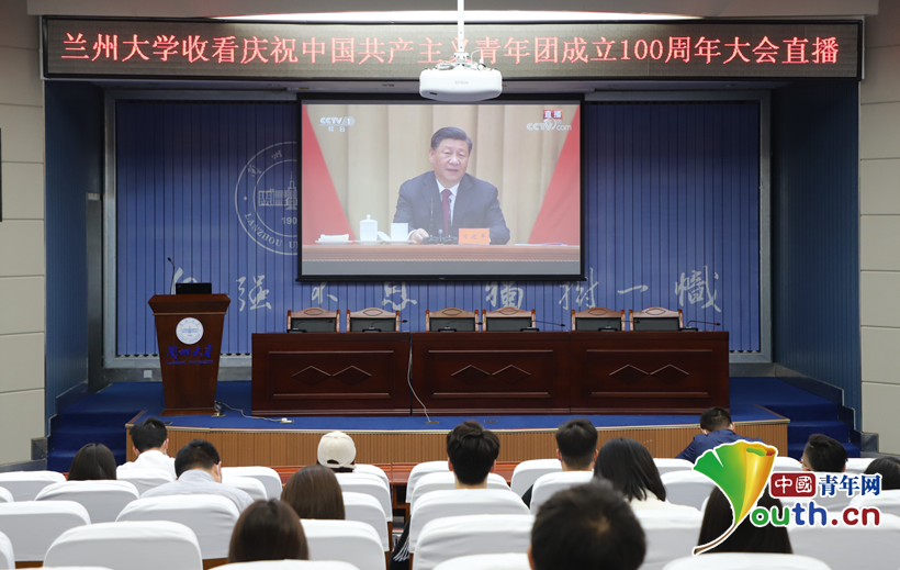 兰州大学师生观看庆祝中国共产主义青年团成立100周年大会直播并学习总书记的重要讲话。