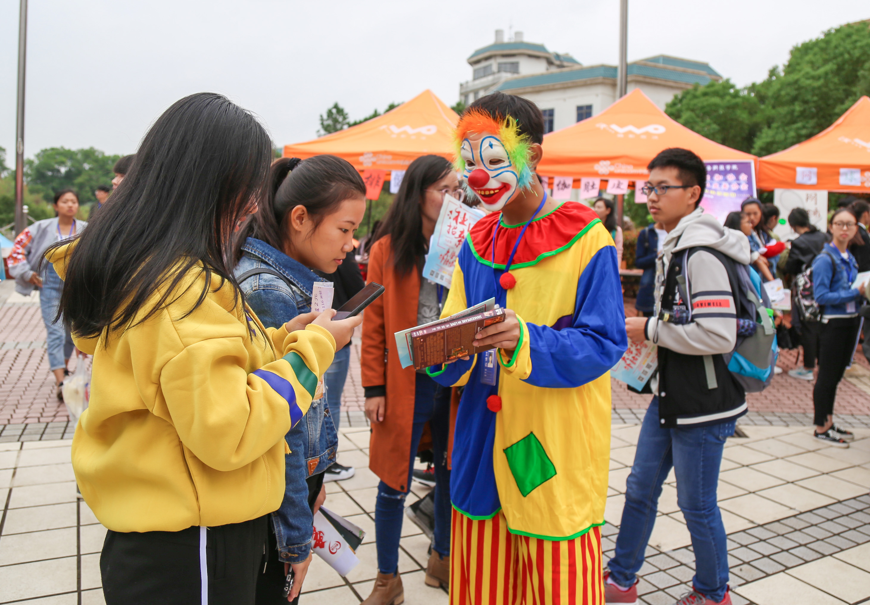 七夕汉服社的同学们身着汉服,或吟诗诵读,或翩翩起舞,或低声浅唱,清新古典,韵味十足;动漫社的同学们穿着cosplay服装,动漫形象栩栩如生,犹如从动漫里走出来一样;航拍协会与当下最“in”最潮新技术相结合应运而生,他们用航拍机凌空展示欢迎“萌新”加入的横幅,引得现场同学们纷纷叫好。传统,科技与二次元文化相互碰撞,社团招新现场精彩纷呈,同学们大呼过瘾。