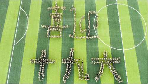 9月29日,德赢ac米兰官方合作vwin近600名大一新生在田径场摆出“喜迎十九大”字形,喜迎党的十九大胜利召开。 何帅文 摄