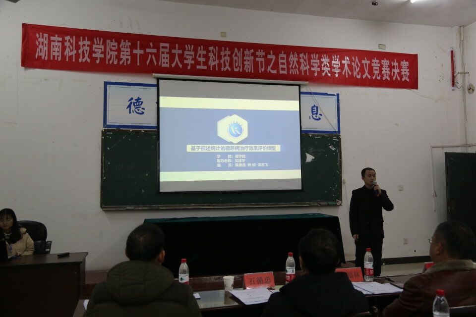 本网讯  为普及科学知识,培养学生创新精神和实践能力。12月17日晚,由校团委主办,理学院协办的的第十六届科技创新节之自然科学类学术论文结项答辩会在明理楼101举行,校党委委员、组织部部长何福林,教务处处长石循忠、土环学院院长周基等出席并担任评委。