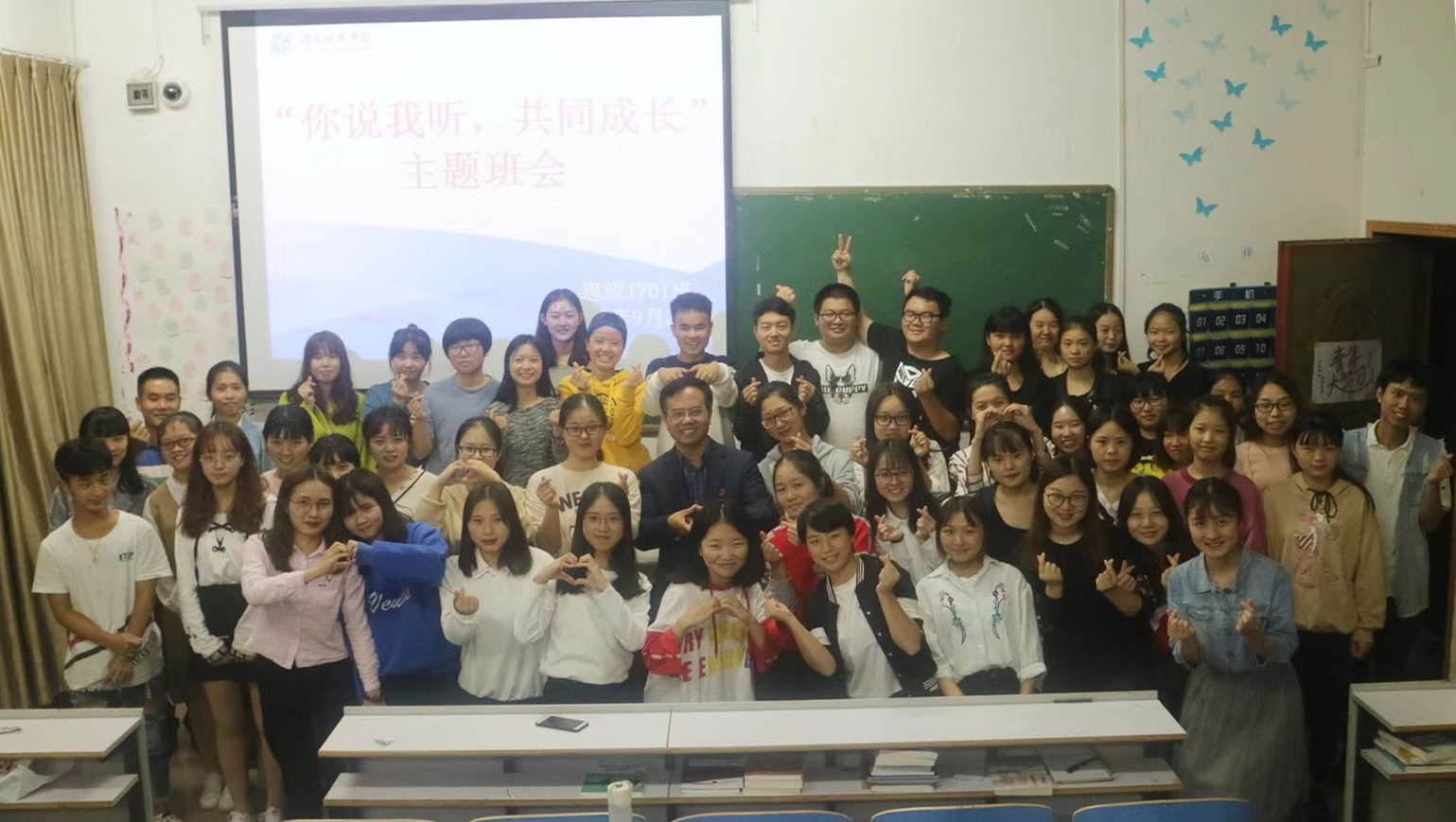本网讯 9月29晚,党委书记陈弘以思政1701班班主任身份参加该班新学期举行的“你说我听,共同成长”主题班会,与师生真情分享,共话成长。