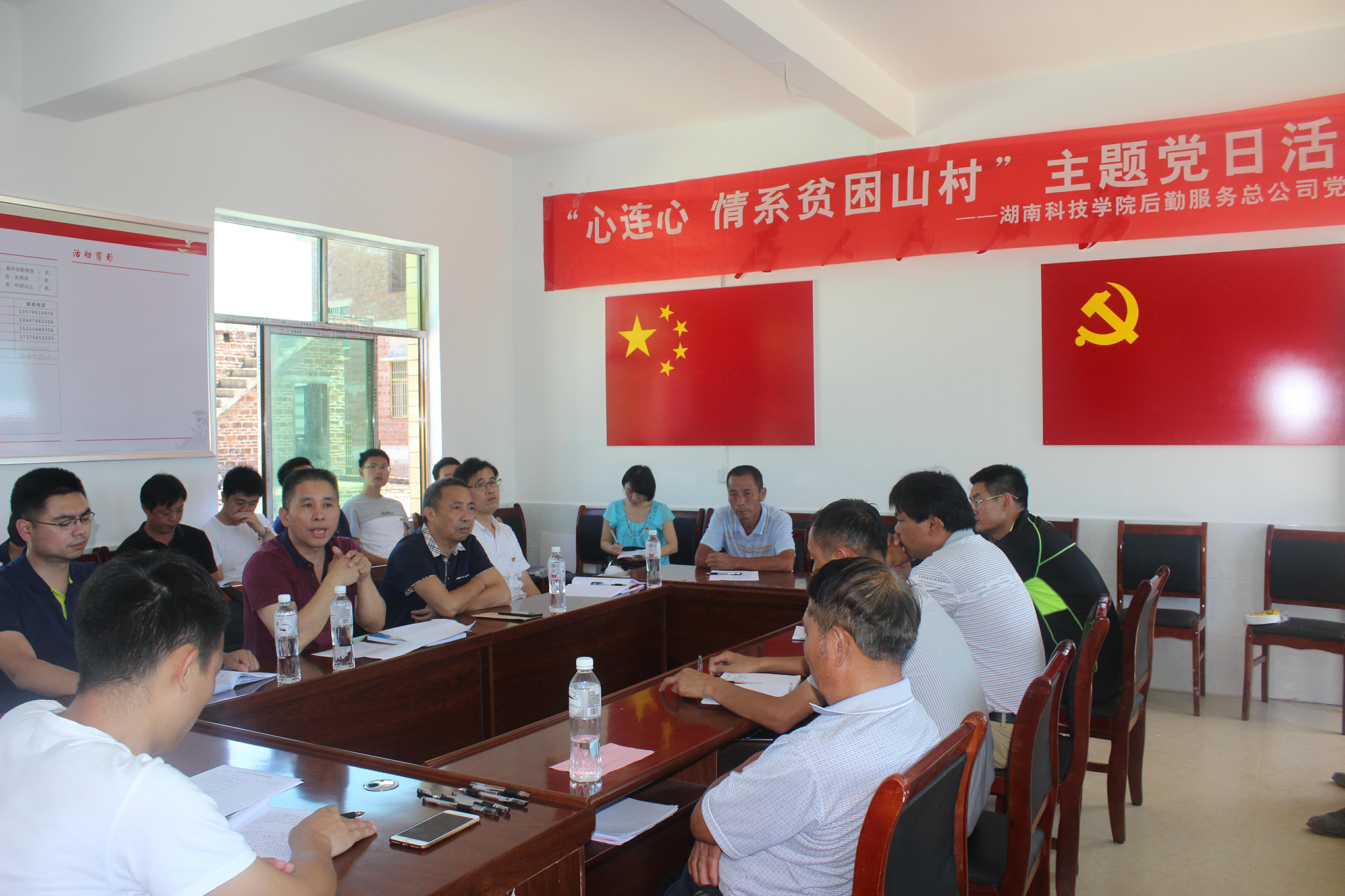 本网讯 6月28日,后勤服务总公司党总支组织全体党员赴新田县枧头镇马场岭村开展以“心连心、情系贫困山村”为主题的党日活动。