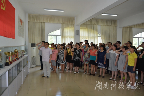 在鲜艳的党旗下,全体教师党员高举右手,紧握拳头,在该院党总支书记陈泽顺的带领下庄严宣誓:“我志愿加入中国共产党……随时准备为党和人民牺牲一切,永不叛党!”铿锵有力的声音激荡着全体党员的心。通过宣誓,全体教师党员思想认识得到再次升华。